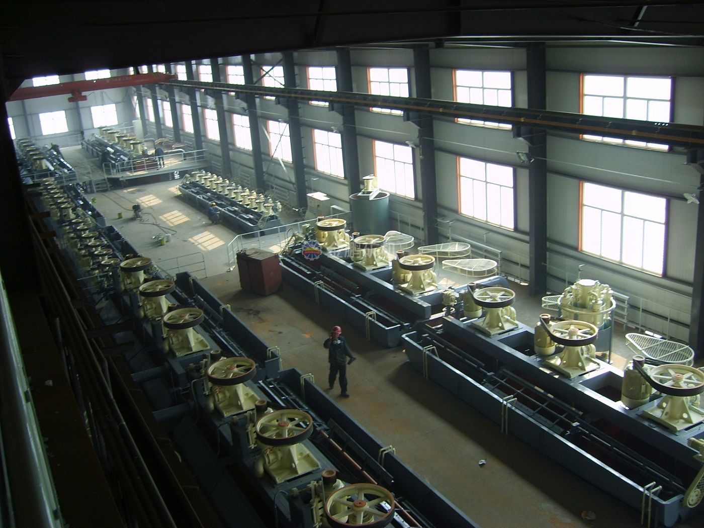 浮選分為三個系列,采用一次粗選,四次精選、三次掃選流程,選用XCF/KYF-16浮選機36臺,GF-3浮選機21臺。
